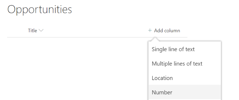Just Add an App to a SharePoint site, pick Custom list as template and give “Opportunities” as list name. Add new Number typed column, named Count.