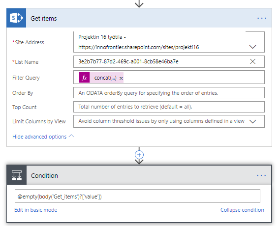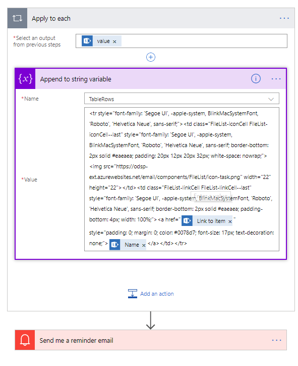 If items are found, flow builds a table of the results and sends an email to creator of the flow. All of this is configured ready for you with just few clicks.