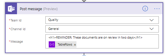 With just a few simple changes, reminder flow can be converted to post reminders on Microsoft Teams channel. You just need to add and configure “Post message” action and remove “Send me a reminder email” action.