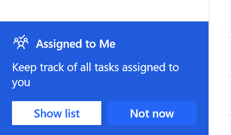 Plannerissa olevia tehtäviä voi selailla Määritetty minulle -listanäkymässä (Assigned to Me). Tällä hetkellä lista näyttää tehtävät luontijärjestyksessä eikä järjestystä pääse muokkaamaan. Tehtävästä näytetään sen otsikko, alitehtävien lukumäärä, Planner-suunnitelma, asetettu määräpäivä sekä tehtävän kuvauksen ikoni. Tehtävää pääsee tarkastelemaan tarkemmin tai sen voi merkata suoraan näkymästä valmiiksi.