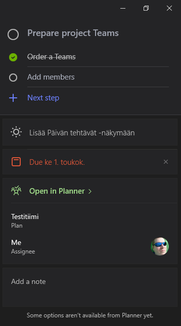Changes to the Planner are updated almost real-time. In addition, the view can open the task directly to the Planner and add the task to To-Do’s My Day view.