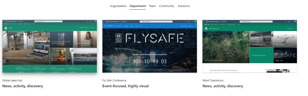 Organisaation kotisivu (Home Site) on vähän kuin se perinteinen intranetin etusivu, jossa näytetään tärkeää sisältöä. Sivustolla voidaan hyödyntää viestintäsivustoilta tuttuja toiminnallisuuksia niin Microsoftilta kuin kolmansilta osapuoliltakin. Käyttäjät pääsevät organisaation kotisivulle helposti Office 365 -yläpalkin linkin kautta ja samoin SharePoint-mobiilisovelluksessa on tarjolla linkki etusivuun.