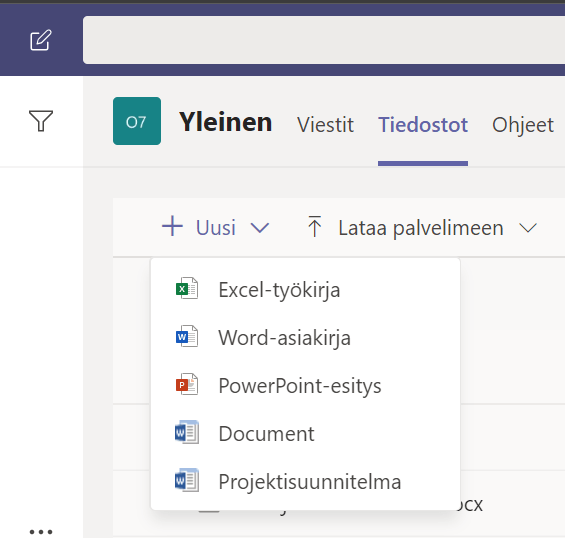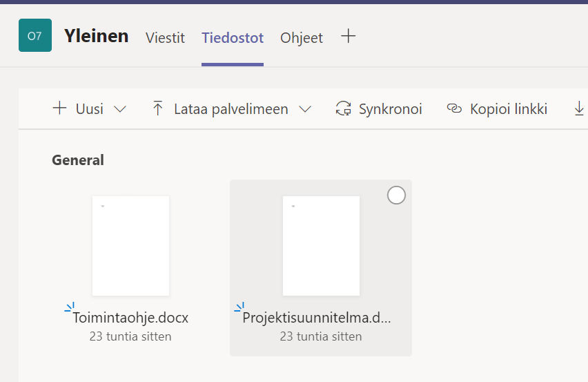 Uusi tiedostonäkymä tuo SharePoint-dokumenttikirjaston perustoiminnallisuudet käyttöön suoraan Tiedostot-välilehden toimintopalkkiin. Muun muassa kaivattu dokumenttien synkronointi omalle työasemalle on mukana, samoin esimerkiksi valitusta dokumentista saa näppärästi luotua uuden välilehden kanavalle yhdellä painikkeella.