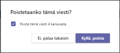 Kun olet poistamassa usealle kanavalle julkaistua viestiä, saat varmistuskysymyksen siitä, haluatko poistaa tämän viestin vain tältä kanavalta vai kaikilta kanavilta.
