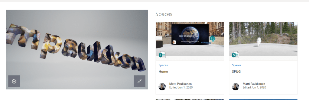 SharePoint Spaces is a recent addition to SharePoint Online, currently on preview. Immersive, mixed reality content supports displaying and investigating also 3D objects. If you are not so familiar with Spaces and interested what it is, check my recent blog post about it: https://mattipaukkonen.com/2020/05/01/first-touches-of-sharepoint-spaces-preview/