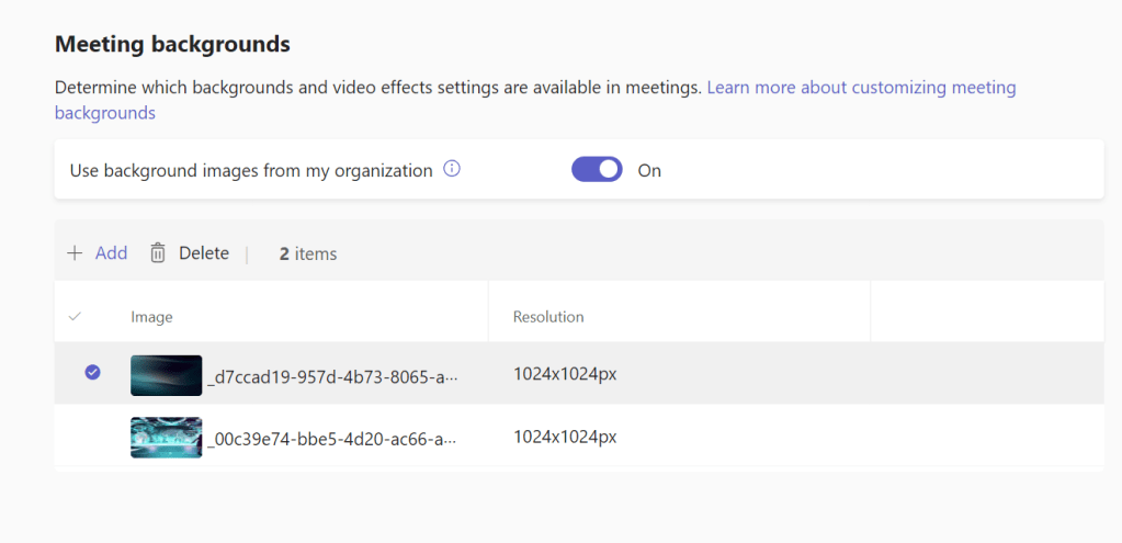 Customization policies enable distributing organization’s Teams meeting backgrounds. A total of fifty backgrounds can be added to a policy.