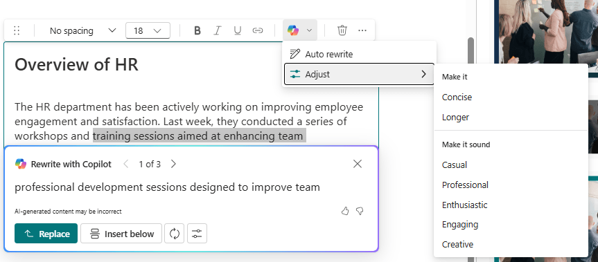 Did you know that you can fine-tune your text in SharePoint pages with Copilot?